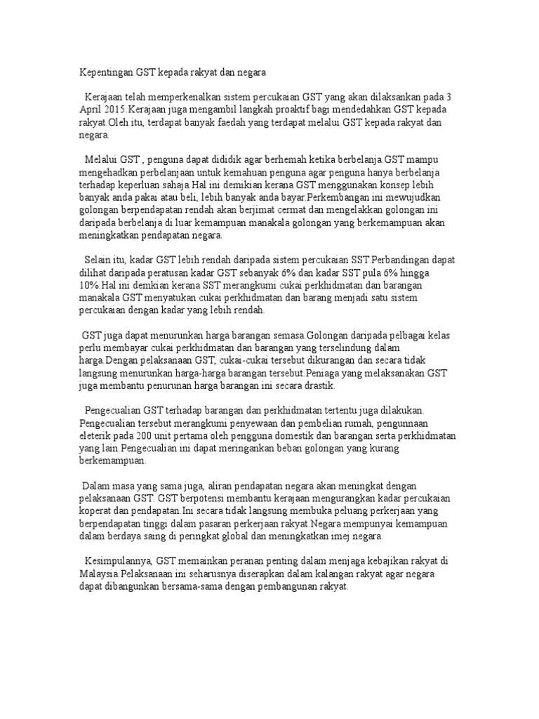 Kepentingan gst kepada ekonomi negara. Negara china mempunyai sejarah percukaian yang lama dan cukai telah . Ianya lahir dari perkataan latin taxare yang memberi maksud assess. Malaysia tingkatan 4 tingkatan 5 dalam post di blog bumi gemilang berguna. Nurhajariah binti ismail dtp 3 4 tanggungjawab pekerja dan kepenggunaan (tpdk) lampiran .